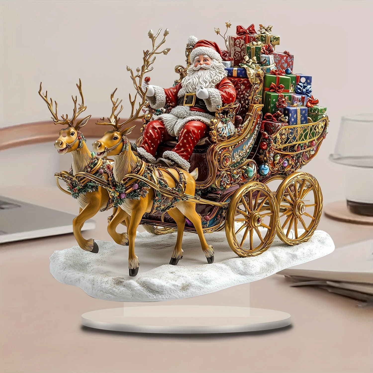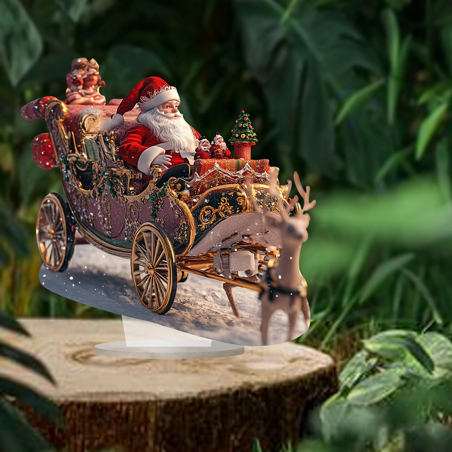 10in 2D Acrylic Display Stand Elk Sled with Santa Claus Christmas Decorations Multi-Functional Home Desk Decoration Photo Prop