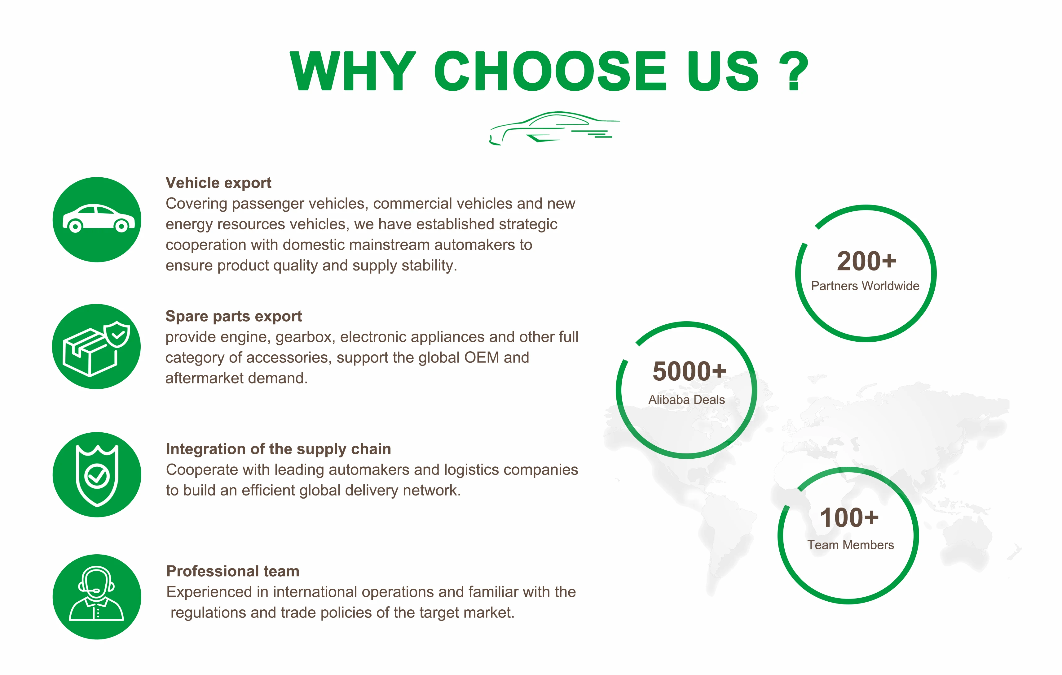 Customer satisfaction and trust are our driving force. By establishing long-term cooperative relationships with customers from all over the world, we continue to expand our brand influence and are committed to providing high-quality automotive products and services.