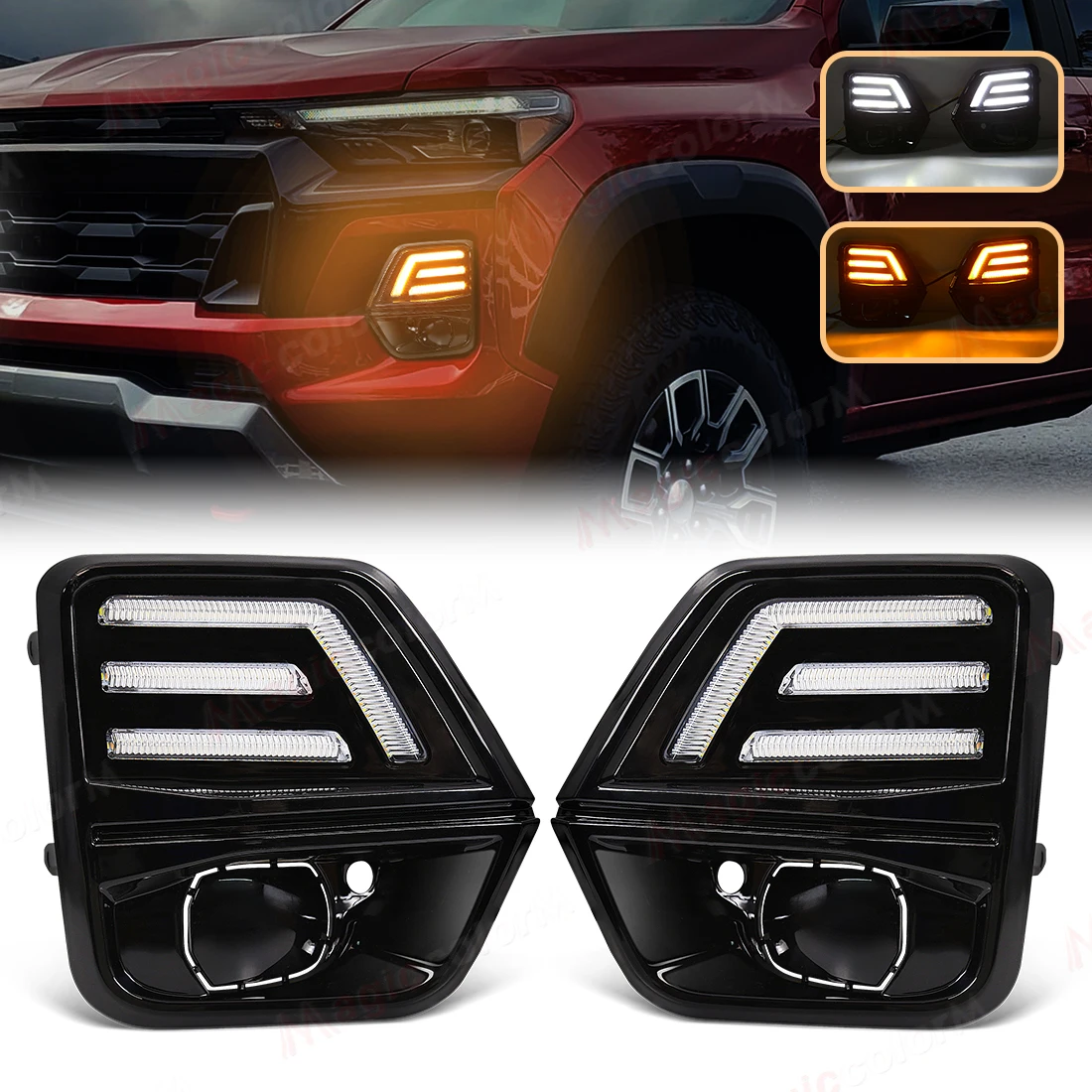 Car LED Driving Light Kit Daytime Running Lights DRL for Chevrolet Colorado 2023 2024 With Turn Signal Fog Lamp Cover