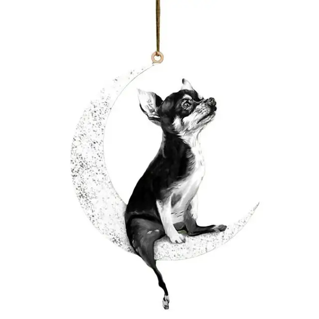 Car Rearview Mirror Pendant Dog Pendant Sitting On The Moon Cute Teddy Puppy Hanging Ornament Keychain Pendant Christmas Decor