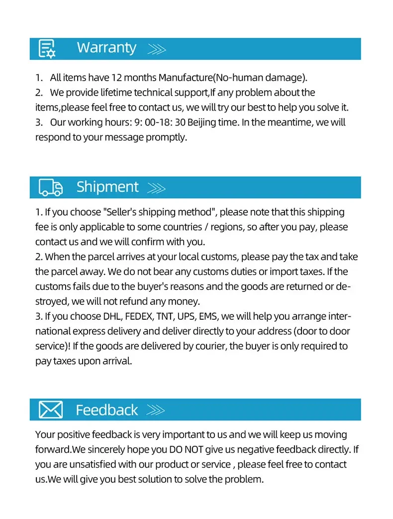 Notre objectif est que chaque client soit entièrement satisfait de son achat. Si ce n’est pas le cas, faites-le-nous savoir et nous ferons de notre mieux pour trouver une solution avec vous.
