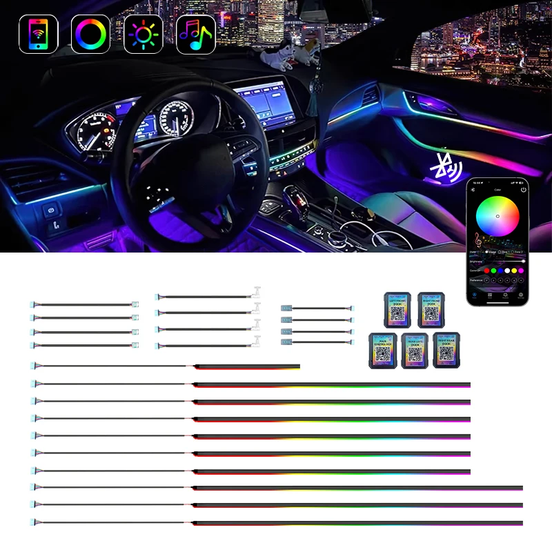 OEM Factory Customization Ambient Light Car Led Lamp 18 / 22 in 1 RGB Dynamic Symphony Interior Led Car Lights