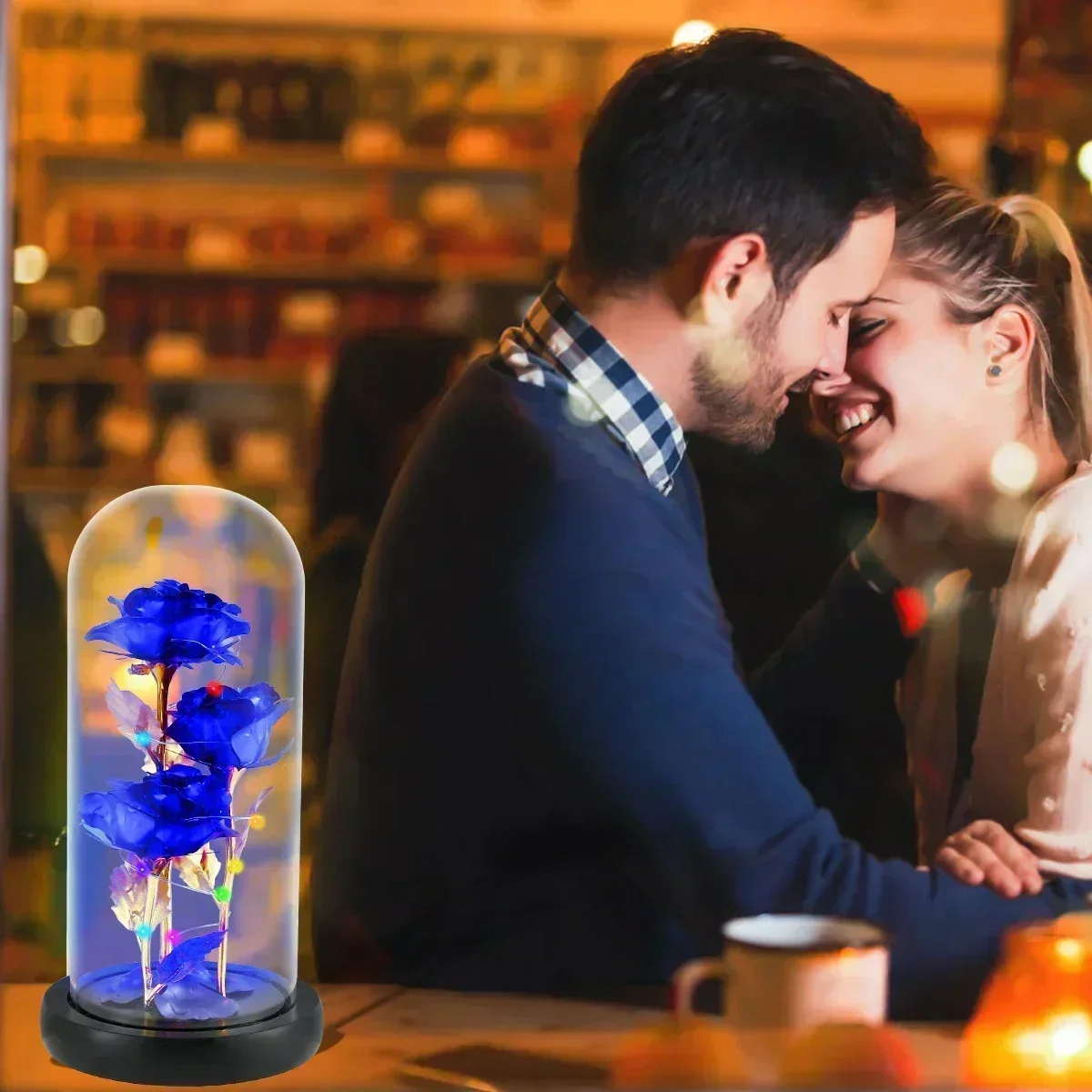 Rose enchantée en verre avec lumières LED, fleur artificielle, cadeau de Noël, la belle et la bête, Saint Valentin